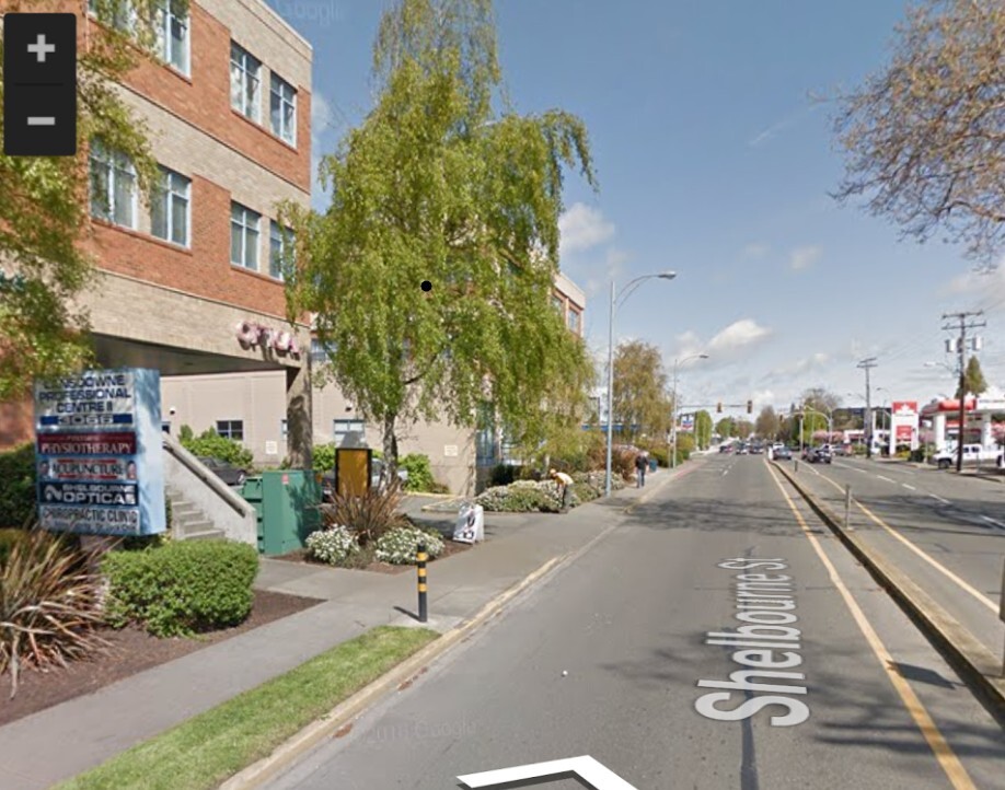 If you are travelling from northern parts of the island, you will take the Island Highway to Victoria. Once you reach Uptown Shopping Centre on your left, the Island Highway changes to Douglas Street. Stay on Douglas Street, you will pass the Mayfair Shopping Centre on your left. Shortly after this you will approach a 5-way intersection with an old brick building and a car dealership on your left. This is where you will turn left onto Hillside. Stay on Hillside and you will pass Hillside Shopping Centre on your left. As you approach the Hillside/Shelbourne intersection, you will make sure you are ready to turn right. You can either enter the parking lot/underground parkade on the 1641 Hillside or turn the corner and enter 3066 Shelbourne. The underground parking of both buildings is connected.